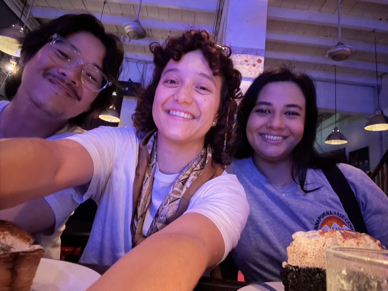 The music filled my senses, my eyes darting from the pianist, bassist, saxophonist and drummer, all of the musicians seeming like retired professionals who have been dreaming of this time where they could perform their lifelong hobbies every Wednesday. My mouth was busy understanding the diverse palette of cakes, my hand tapping to the beat and nose untangling the mix of old red wine and sweet cakes, whilst, my ears flooding with nostalgia. They were playing songs my mum usually sings. That's when the beautifully composed singer, Mable Ooi, asked the question; does anyone want to jam with us? Before my heart could talk me out of it from my fear of singing in public, my head already decided that I would go up and sing a song with the master musicians. Why? Well, maybe because I was far away from home and facing my fear didn't seem so scary anymore. Apart from Jules and Huy there was no one here that knew me so their judgement wouldn't follow me through life and, two, I missed my mum and singing was a way to get closer to her. So, well, I guess you'll just have to wait for the episode to come out to hear it, but it was fun!