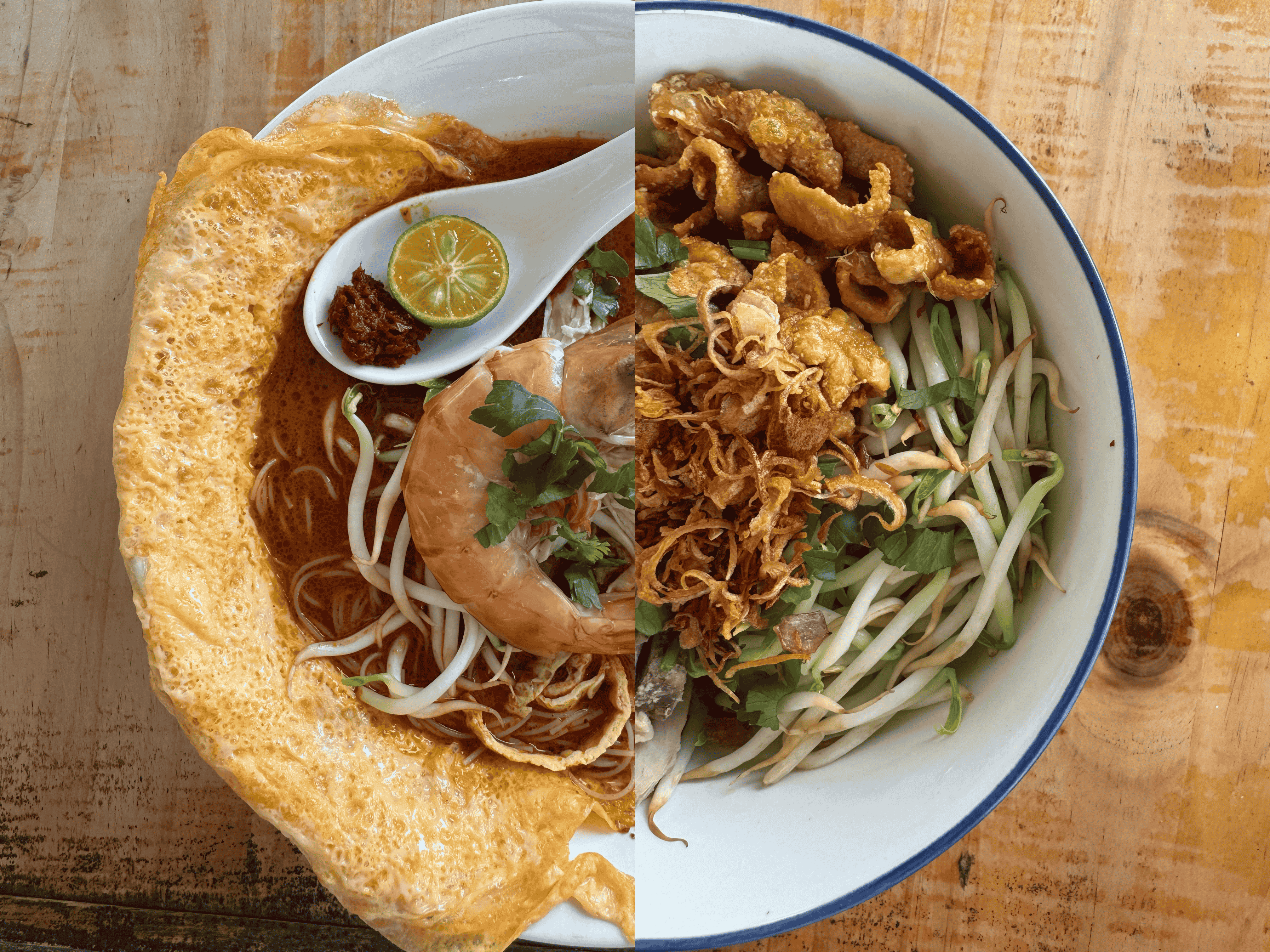 Okay, now here come the noodles; boiled, charred, fried, stewed - whatever way they make it, it all tasted bloody amazing. We walk on over to a restaurant serving assam laksa and char kuey teow. Assam laksa is a noodle dish with this divine sour yet salty flavour. The fish broth layered on top of a deliciously addictive sour base is topped with fresh vegetables and chunks of fish. Next, the dish that brought me here in the first place: char kuey teow (also, char keow tiau). It was good, but not exactly what I was looking for, it didn't have the charred factor. Another noodle dish that we enjoyed was more plain and subtle, koay teow th'ng is a clear flat noodle soup with meatballs and chicken pieces. It is perfect for mornings when you've just woken up and don't want anything heavy. A level inbetween the sour and plain is the white curry mee. A seafood noodle soup in a light coconut broth that is topped with crunchy fresh tauge and chilli sambal.